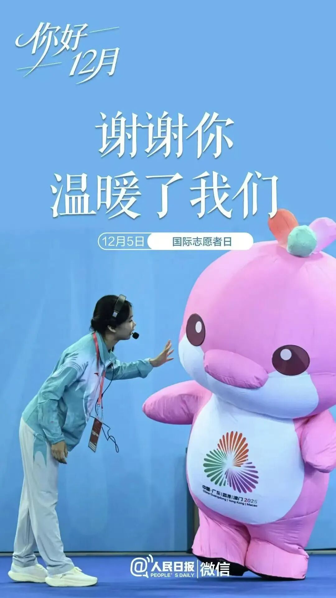 ▲十五运会和残特奥会江门赛区花样游泳比赛中,伸小手与“乐融融”互动的江门中医药职业学院林依妍同学登上人民日报微信公众号。