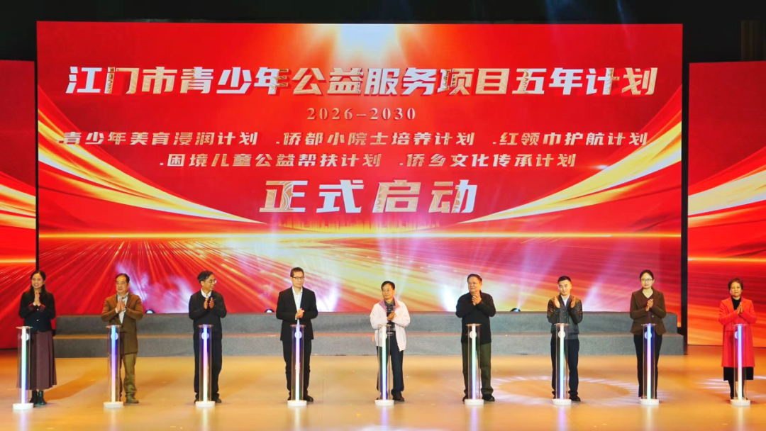 展望未来,赋能侨乡青少年全面发展,活动启动发布了《江门市青少年公益服务项目五年计划》)——在2026-2030年间,启动实施青少年美育浸润计划、侨都小院士培养计划、红领巾护航计划、困境儿童公益帮扶计划与侨乡文化传承计划,系统构建青少年公益服务体系的行动纲领。