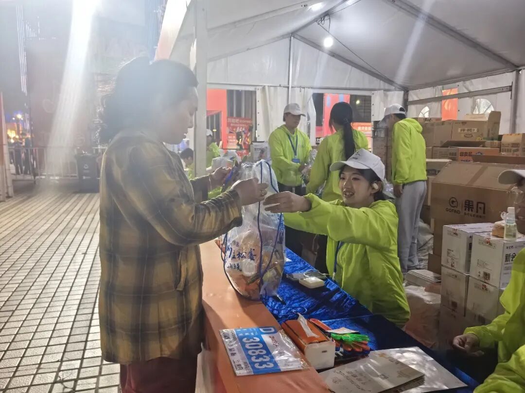 ▲号码布分发、参赛服装领取、计时芯片测试……各个服务环节衔接顺畅、配合默契。