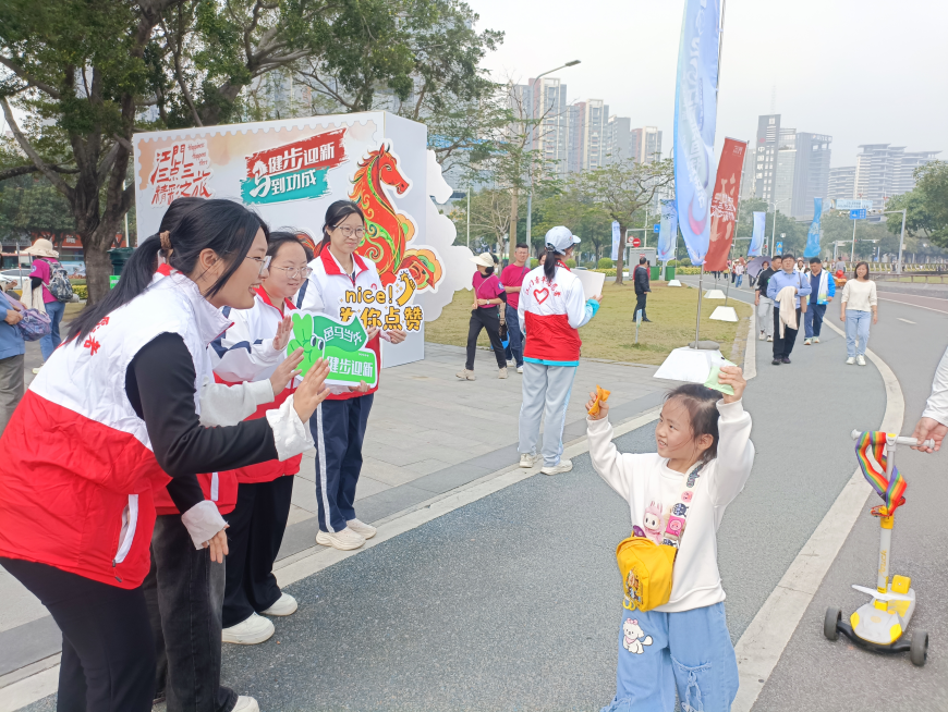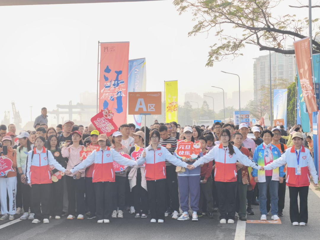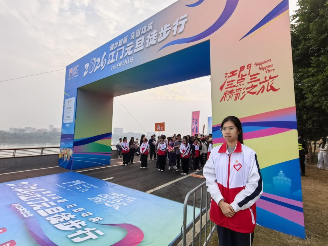 1月1日,“健步迎新 马到功成”江门市2026年元旦徒步行活动在蓬江区国际马拉松公园活力开启。市委书记陈杰,市委副书记、市长吴晓晖,市政协党组书记、主席张磊,市人大常委会党组副书记、副主任凌传茂等市四套班子领导为活动鸣笛发令,与现场超过3000名市民游客共同起步,以蓬勃朝气与矫健步伐迈向新的一年。市委社会工作部、团市委、市义工联、市青志协组织了来自五邑大学、江门职业技术学院、广东江门中医药职业学院的200名青年志愿者圆满完成这项活动的志愿服务任务。