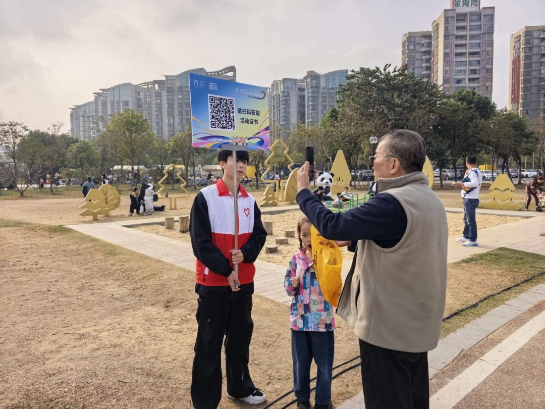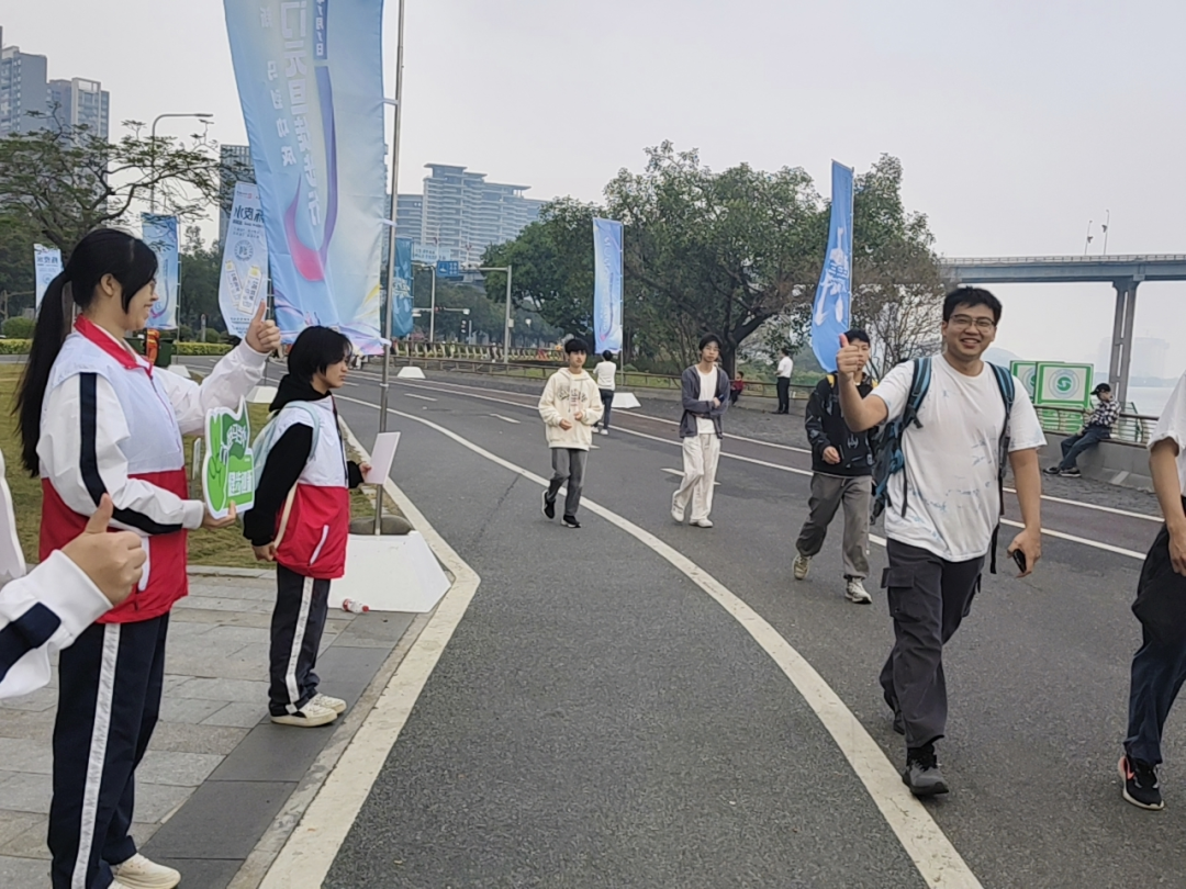 当市民畅享运动乐趣、饱览侨乡风光时,青年志愿者们的身影始终活跃在各个角落。他们有的变身物资补给员,在物资发放点为活动参与市民递上饮用水、发放纪念明信片;有的化身路线引导员,手持指引牌在赛道沿线、折返点坚守,清晰告知参与者行进方向;还有的化身暖心清洁员,手持垃圾钳清理经过的每一处地方,都变得整洁干净。他们用脚步丈量责任,用汗水诠释担当,成为这场“体育+文化+旅游”盛会中不可或缺的青春力量。