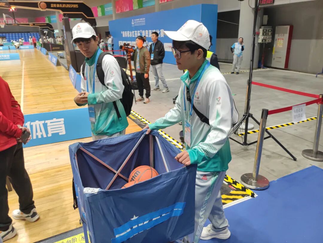 他们化身“赛场搭档”,赛前细致检查篮球、记分牌等器材的完好性,协助裁判完成运动员检录、站位引导等准备工作;赛中专注记录赛事数据、传递赛事用品,及时为运动员递上饮用水;赛后快速整理场地器材,引导运动员有序离场,用细致周到的举措保障了赛事顺利举行。