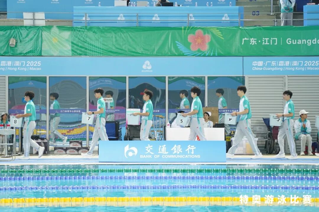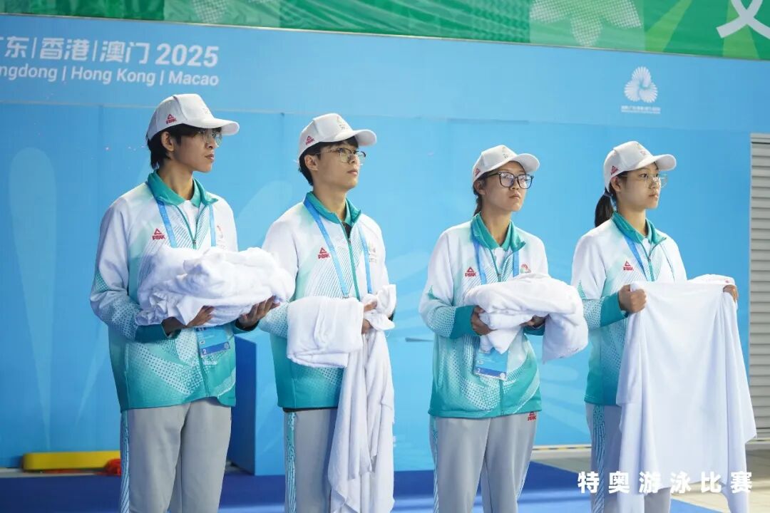 他们坚守在泳池周边的各个岗位,有的协助教练引导运动员进场,有的负责场内竞赛服务工作,有的负责运动员休息区服务,随时准备为需要帮助的运动员提供搀扶和饮用水、毛巾递送等服务,颁奖礼仪更是他们荣誉的“见证者”。他们用耐心与细心,为参赛选手营造了安全、安心的比赛环境。