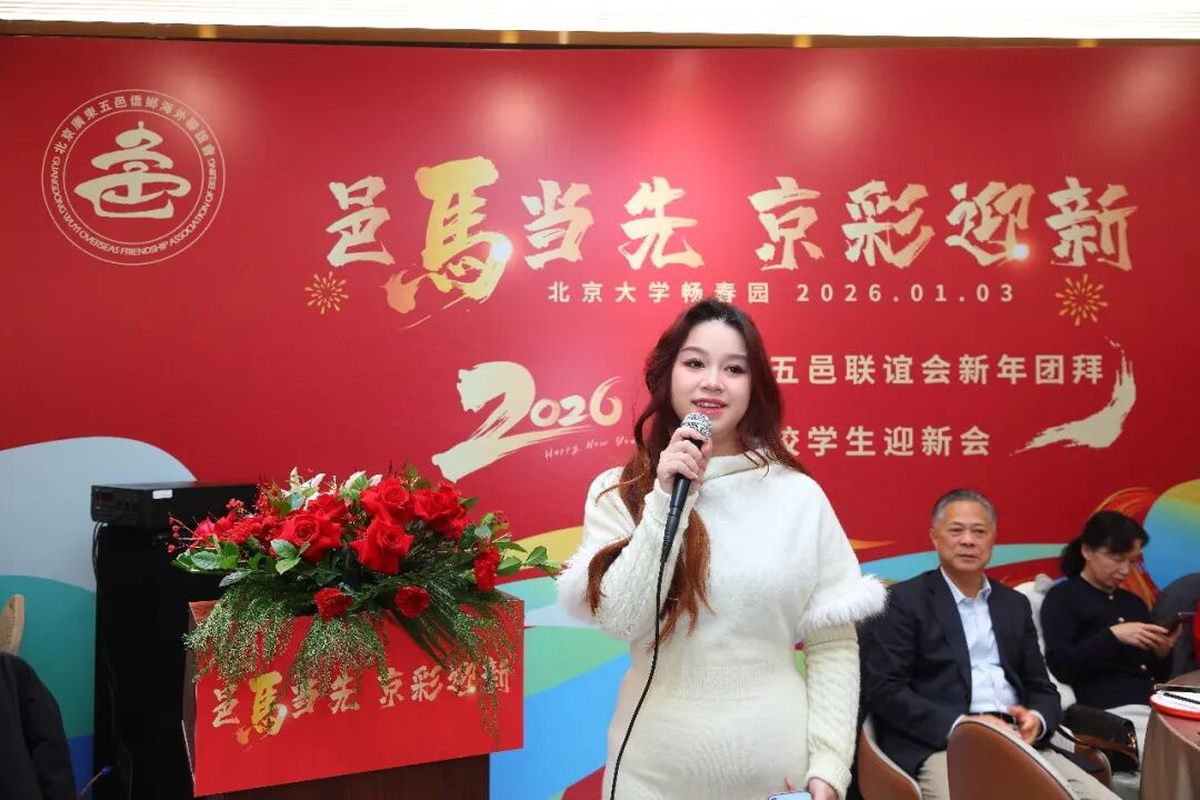1月3日,“邑马当先 京彩迎新”2026年北京五邑联谊会新年团拜会暨高校学生迎新会在北京大学畅春园举行。中国侨联原副主席唐闻生,梁启超先生孙女梁红、司徒美堂先生孙女司徒月桂、陈垣先生重孙陈雪松、陈白沙第二十一代后人陈泽荣等五邑先贤后人代表,以及在京各界五邑籍人士、“邑青联盟”在京江门籍学子等约200人齐聚一堂,共叙乡情,同贺新岁。